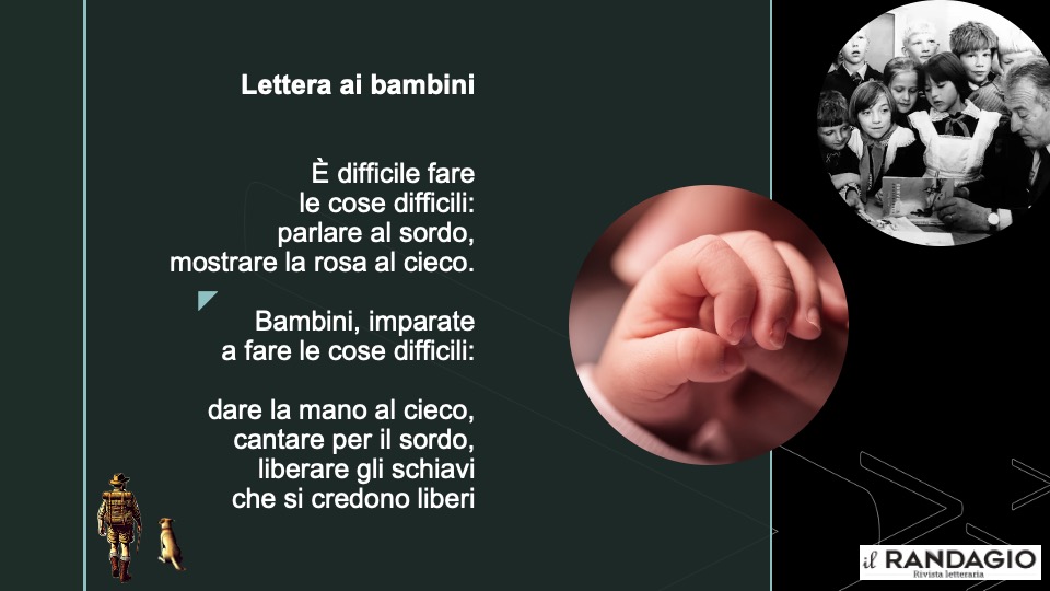 L’errore creativo ci invita ad accogliere con curiosità l’incertezza e l’imprevisto. Ci ricorda che l’imperfezione, in molti casi, non solo nell’arte, può rappresentare una via verso la scoperta e il cambiamento. Rodari conclude dicendo che, se un tempo reggeva il proverbio “sbagliando s’impara”, oggi bisognerebbe dire “sbagliando s’inventa”. E noi Randagi gli siamo grati anche per questo.
