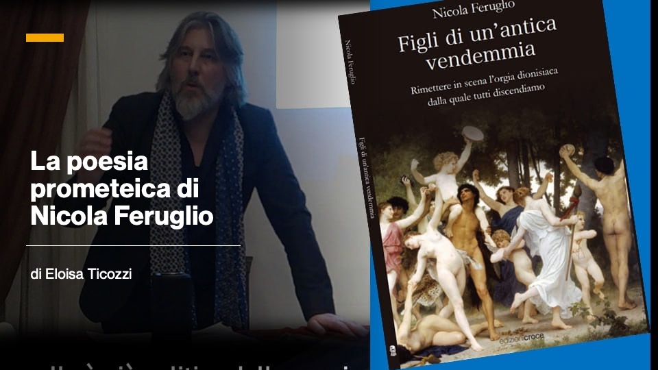 La poesia “L’insurrezione ecosofica” comunica la sofferenza della terra e del creato; il richiamo al panteismo di antichissime civiltà ci ricorda gli Indiani d’America, che sentivano la natura e gli animali gemere di spirito. Il poeta Feruglio ci definisce metastasi nel corpo di Gaia, qualcosa che si stacca e cresce dalla madre terra, qualcosa che viene nutrita da essa ma soffre. L’agricoltura biodinamica descritta dal teosofo Rudolf Steiner, si incentrava su un’etica di coltura e di sviluppo della terra, sia nella fauna che nella flora. Oggigiorno si affacciano nuovi scenari in cui i diritti degli animali verranno sempre più sostenuti con compassione e coraggio, sperando uno scenario così aderente. La poesia “I gemelli della mia preesistenza” indica una connessione fra fratelli, defunti o meno, che sia scevra della mera biologia, ma che appartenga a un progetto più ampio di umanità. La poesia “L’iniziazione balcanica” è un grido contro le guerre, celebrando lo spirito universale dei popoli, contro le sopraffazioni e la crudeltà. Oggigiorno il mondo è ancora in ginocchio per gli scenari geopolitici instabili che hanno causato dei veri e propri genocidi. La poesia “Versi riconoscenti per Allen” è una poesia dedicata alla Beat Generation e ad Allen Ginsberg (1926-1997), alla ribellione contro schemi e concetti precostituiti, all’insurrezione per la guerra del Vietnam di quel periodo, alla conquista parziale per i diritti di afroamericani, omosessuali, di diversa religione o etnia. Si fa riferimento anche al demone (daimon) della creatività e dell’immaginazione onirica, della poesia come spazio intimo dell’uomo, un rifugio sensibile e libero, lontano dal quotidiano. Ho apprezzato in particolar modo un piccolo riferimento a “Saluto e Augurio” di Pier Paolo Pasolini (1922-1975), (La Nuova Gioventù ,1975), una sorta di testamento paradossale scritto in friulano (nelle prime pagine è un tributo del poeta Feruglio). Pasolini, figura autorevole come Socrate, capisce che la nuova sinistra rifiuta la tradizione in quegli anni, quindi, paradossalmente, cerca di trasmettere la sua conoscenza a un giovane fascista, consapevole che i loro valori sono e saranno per sempre agli antipodi. Tuttavia, egli ricerca il nemico, la persona ostile, per essere liberato di quel fardello di conoscenze troppo alto e supremo anche per lui, perché anziano e stanco. La terra, la tradizione, i campi, sono lo spazio spontaneo e puro; il greco e il latino hanno fondato l’Italia in quanto lingue di cultura. La madre rappresenta la tradizione e dentro essa si situa la Repubblica che dovrebbe inglobare i poveri, gli afflitti e i dimenticati; si tratta della trasposizione laica dei vangeli e degli insegnamenti di Cristo. Ritornare feti nella madre, per Pasolini, significherebbe abbracciare valori antichi, costruendo una civiltà che protegga l’umile, il povero e il diverso. Il ragazzo fascista dalla camicia grigia deve compiere la rivoluzione nel sonno, non nella realtà, essere “il soldato senza violenza”. Il sonno nel quale ogni poeta e artista rifugge per creare e poter pensare a un mondo diverso e più puro. Amleto paragona la morte a un lungo sonno “Dormire, dormire, nient’altro. Sognare, forse. Ma questo è il punto: quali sogni?”; la morte è un sonno eterno del quale non si conoscono ancora la sostanza e il contenuto che rimangono dubbi e misteriosi.  Il dio Dioniso è inteso come divinità primitiva, dal sapere antico, radicato alle viscere della terra e della natura. L’etimologia del nome significa “nato due volte”, in grembo a Semele, la madre, e dalla coscia di Zeus, quindi una doppia origine paterna e materna, una divinità dalla provenienza ermafrodita e alchemica. Inoltre, il nostro daimon risvegliato da Prometeo che ruba la conoscenza, il fuoco eterno, a Zeus, in un atto altruistico per l’umanità, può essere accostato in senso più moderno all’avvento di Cristo, che ruba anch’esso la vita eterna dal Padre per donarcela. Il testo di Feruglio quindi, attraverso il rincorrersi di poesia e prosa, si colora di molteplici suggestioni culturali, esistenziali e autobiografiche, tutte orientate verso l’orgia spirituale intesa come unico antidoto al tecno-totalitarismo, verso l’oltrepassamento estatico del soggetto e della visione storicistica del mondo, verso un poetare prometeico capace di tras-mutare la vita stessa, verso una nuova ed antichissima vendemmia dionisiaca… che come risuona nel sottotitolo del libro, va rimessa in scena qui ed ora.