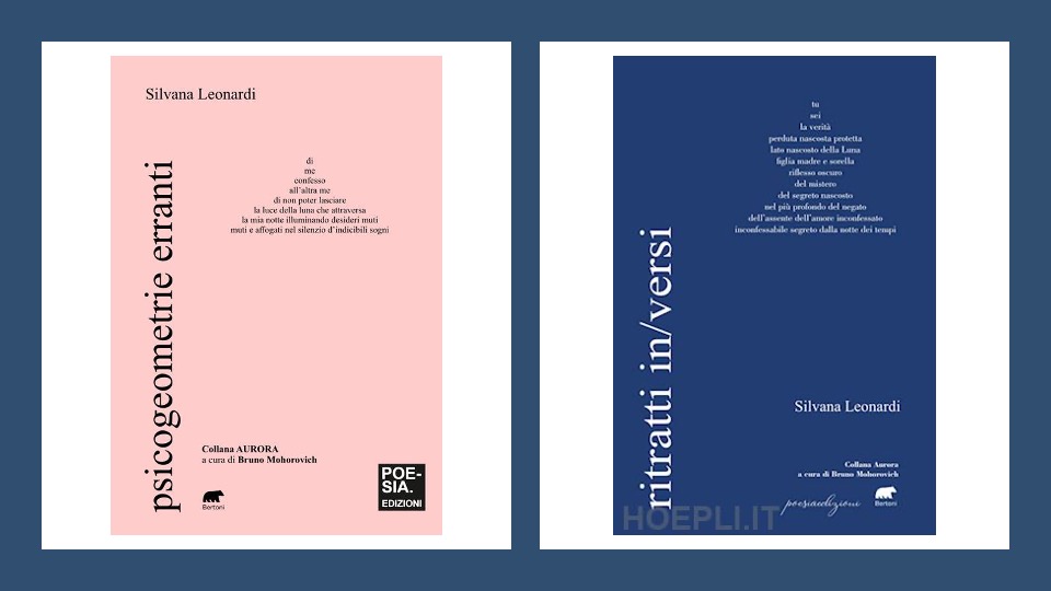 Se ritratti in/versi (Bertoni Editore, 2024) costituisce, come suggerisce lo stesso titolo, una raccolta di ritratti – non solo a base di parole, ma talvolta raddoppiati attraverso la rappresentazione visiva, in grafite e pastelli a olio su carta, ché l’autrice è pittrice oltre che poeta, mentre in/versi allude non solo alla versificazione ma anche all’inversione data dalla scelta, parafrasando una fortunata mostra di Lea Vergine, di dedicare questi ritratti all’ “altra metà” dell’universo creativo, quella femminile – questa successiva, e fin ora ultima, raccolta poetica di Silvana Leonardi,  psicogeometrie erranti (2025), pubblicata per la stessa casa editrice della precedente, oltre che per la stessa collana, Aurora, e prefata ancora da Bruno Mohorovich – curatore della collana – si configura piuttosto come un autoritratto. Meglio ancora come un autoritratto che – come avviene nella pittura cubista o futurista ed anche, per certi versi, in alcune prove impressioniste, benché con strumenti ed esiti differenti – possiede uno sviluppo non solo nello spazio, ma anche nel tempo, dal momento che i componimenti raccolti abbracciano un arco di quasi un decennio. Per quanto ciò sia dissimulato attraverso una disposizione di questi ultimi che non concede nulla alla diacronia, rigorosamente basata sull’ordine alfabetico dei titoli. La non staticità di tale autoritratto è inoltre garantita dal carattere dichiaratamente errante della sua opera, participio presente che associato alla psicogeometria rimanda immediatamente al metodo montessoriano, ma, a sua volta, la psicogeometria potrebbe richiamare alla mente la psicogeografia situazionista, consapevole delle implicazioni emotive proprie dell’ambiente che abbiamo intorno, nonché la deriva, ovvero la principale metodologia che traduca in pratica la disciplina psicogeografica.
