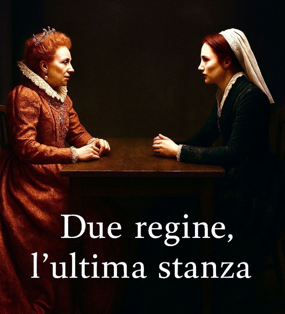 Una stanza nel crepuscolo del mondo. Nessuno ascolta o annota. Non è un processo, non è una scena ufficiale. È l’ultimo incontro, forse mai avvenuto, tra due donne che sono state regine, madri mancate o manchevoli, guerriere costrette, pedine e sovrane. E ora, ci sono solo loro. Al centro una tavola lunga e stretta. L’atmosfera è sospesa e irreale. Le luci sembrano venire da candele che non si vedono. Una porta si apre a sinistra ed entra Elisabetta Tudor, regina regnante d’Inghilterra, sola, avvolta in una veste regale semplice ma austera. Dopo qualche istante da destra entra Maria Stuart, la cui nonna paterna era sorella di Enrico VIII, padre di Elisabetta, fatto che le permette di entrare nella linea di successione al trono inglese. La regina di Scozia è vestita in abiti più morbidi ma consunti dal lungo periodo di prigionia. Le due si osservano in silenzio. Si studiano. Poi si parlano.