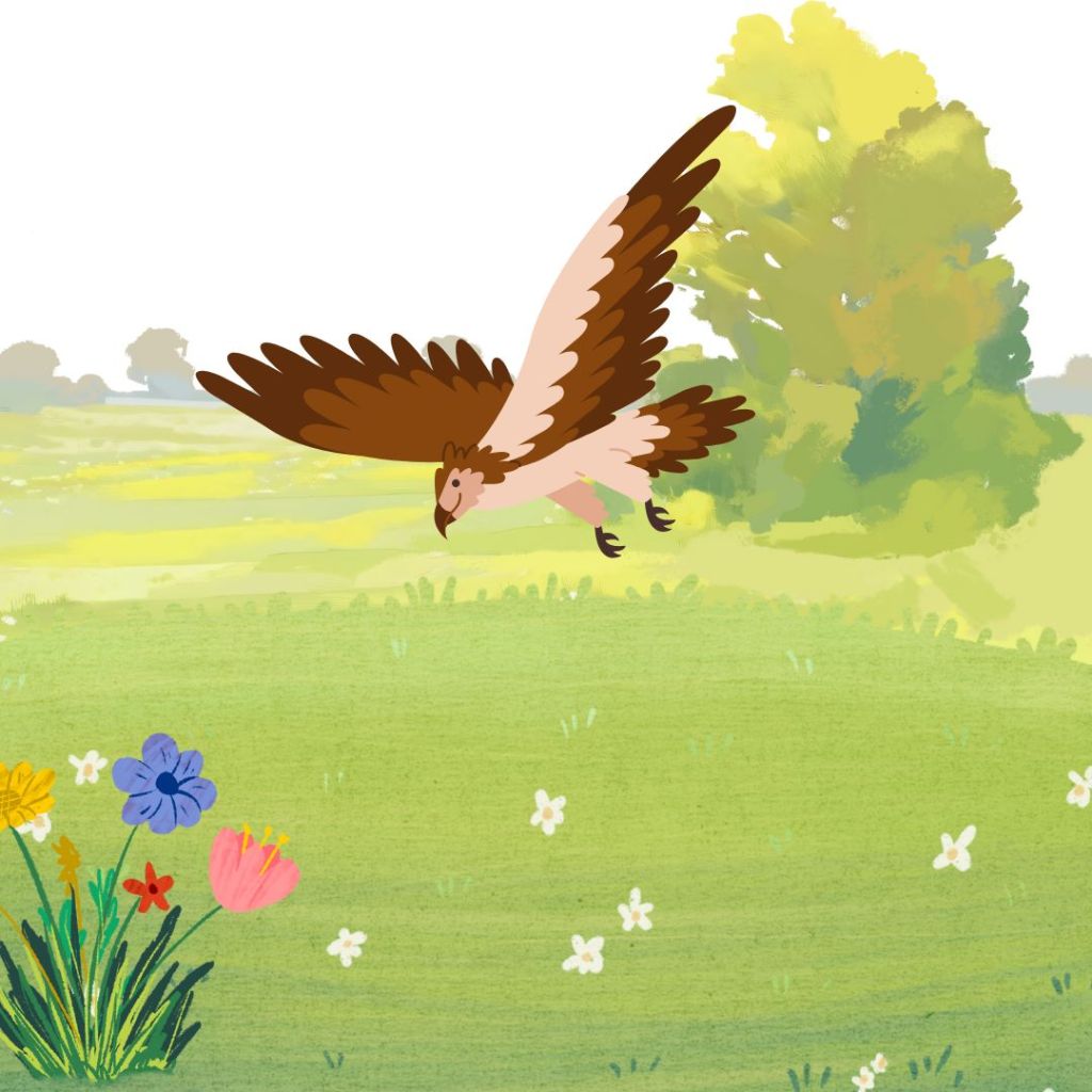 Signora Falco: Uso il volo stazionario! È una tecnica speciale: muovo le ali molto veloce, così non cado, e la coda mi aiuta a stare dritta. Se il vento non c’è, devo inclinare le ali e batterle continuamente… è faticoso, ma funziona!