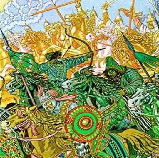 96. Sul far dell’alba piange Jaroslavna sul bastione di Putivl’ dicendo: «O vento, venticello! Perché, signore, soffi nemico? Perché porti le frecce unne sulla tua ala leggera contro i guerrieri del mio sposo? Non ti bastava in alto, sotto le nubi soffiare, cullando le navi sull’azzurro mare? Perché, signore, sull’erba della steppa hai dissipato la mia gioia?»