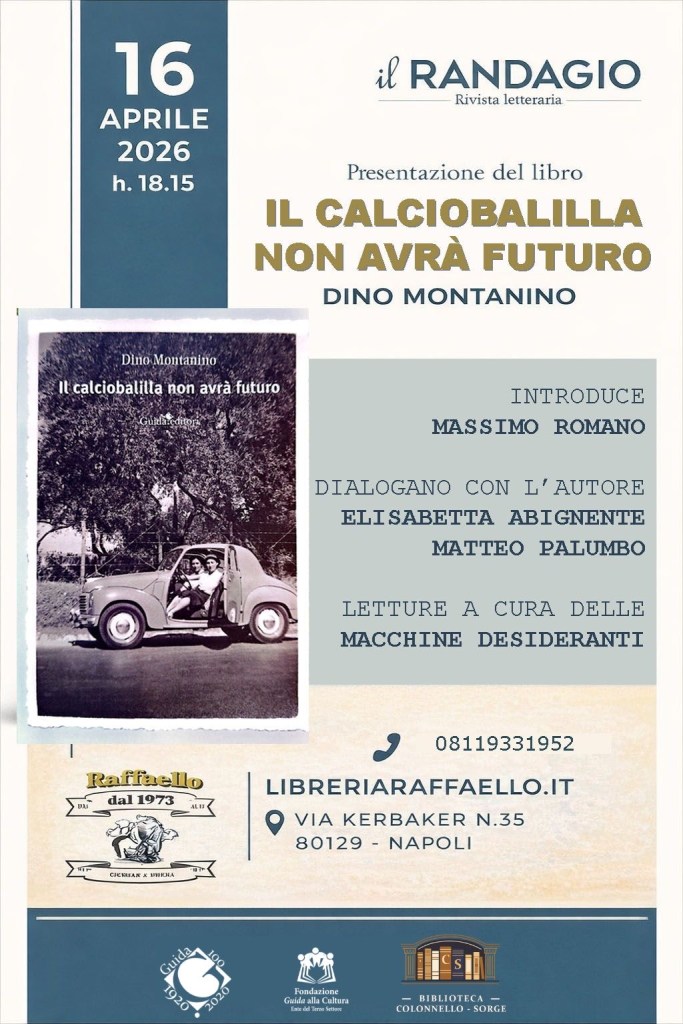 Dino Montanino presenta “Il calciobalilla non avrà futuro” a Napoli, presso la libreria Raffaello di via Kerbaker, giovedì 16 aprile alle 18.15. Introduce Massimo Romano; dialogano con l’autore Elisabetta Abignente e Matteo Palumbo. Letture a cura delle “Macchine Desideranti”.