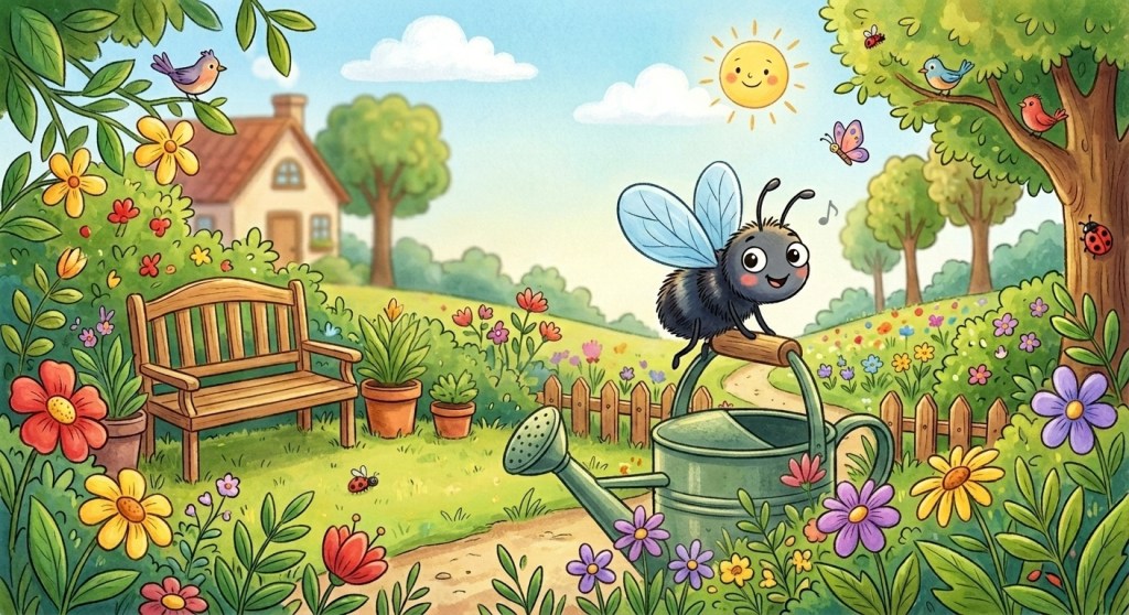 Diego: Ottima idea! Guardiamo un po’… ecco! Vedo una mosca posata sul bordo dell’annaffiatoio. Signora Mosca, ci sente?