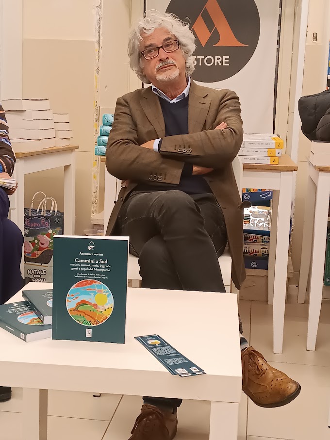 Antonio Corvino, per me, prima ancora che un professore, un economista, un saggista, un meridionalista, un romanziere e un poeta, è uno splendido compagno di viaggio. Abbiamo attraversato insieme a piedi molti luoghi degli Appennini, tra Campania, Basilicata e Puglia. Quelli che per lui erano poco più che passeggiate, per me erano cammini faticosi, che mi lasciavano vesciche enormi e dolorose sui piedi. In questi percorsi abbiamo condiviso esperienze indimenticabili, tra i panorami mozzafiato e le difficoltà del Cammino degli Anarchici, dei Briganti, o della lunga Benevento-Matera. Mentre io arrancavo con la vista annebbiata dalla fatica, pensando al letto e alla cena — alla pasta e fagioli e all’aglianico — lui, con la sua insaziabile curiosità, si addentrava in ogni chiesa o cappella che incontravamo lungo il sentiero. Non si limitava a un’occhiata veloce: si fermava estasiato davanti a ogni pala d’altare, a ogni statua, come se osservasse un capolavoro unico e irripetibile.