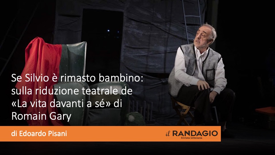 Silvio Orlando è un bambino tenero e pieno di grazia e il romanzo di Romain Gary in scena rimane il capolavoro che è sulla pagina. Occorre fare un plauso all’edizione italiana del libro, cioè alla traduzione di Giovanni Bogliolo (già traduttore di Flaubert per i Meridiani), riportato vent’anni fa nelle librerie dall’editore Neri Pozza. Chi ha letto e amato il romanzo non rimarrà deluso e anzi si sorprenderà, perché la regia di Silvio Orlando porta pure cose proprie al già straordinario Romain Gary: la musica, per esempio, con il refrain di Comment te dire adieu, canzone scritta da Serge Gainsbourg e cantata da Françoise Hardy, ma anche i tamburi africani e altri motivi pieni di nostalgia e di tenerezza, e poi il talento di Silvio Orlando, che balla e si commuove e ride e piange e racconta la vita di Momò e un po’ anche se stesso (e quindi tutti noi) con la delicatezza di un vecchio uomo mai veramente diventato adulto, perché l’infanzia ci riguarda tutti e chi pensa di averle voltato le spalle o di averla superata ha già cominciato a morire o a perdersi nel banale o maligno caos del mondo, e noi vogliamo salvarci.